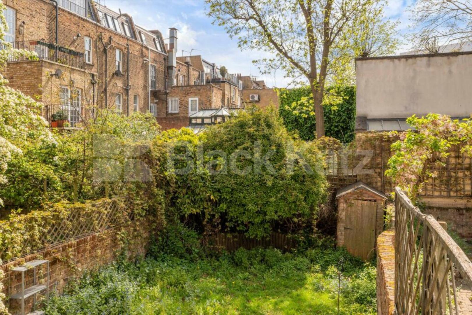To the rear sits the modern bathroom, a utility cupboard and the double bedroom that has direct access to a private balcony overlooking the mature garden below.